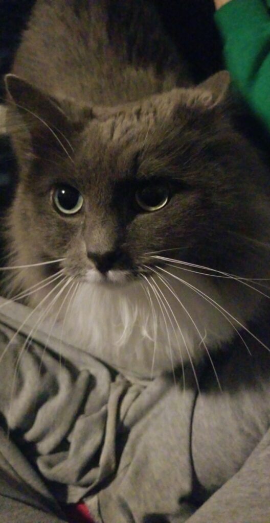 Maddi shares her home with three beloved cats—Sammy, Gina, and Papa Pounce—and cherishes the memory of her late cat, Beauxie, who will always hold a special place in her heart.